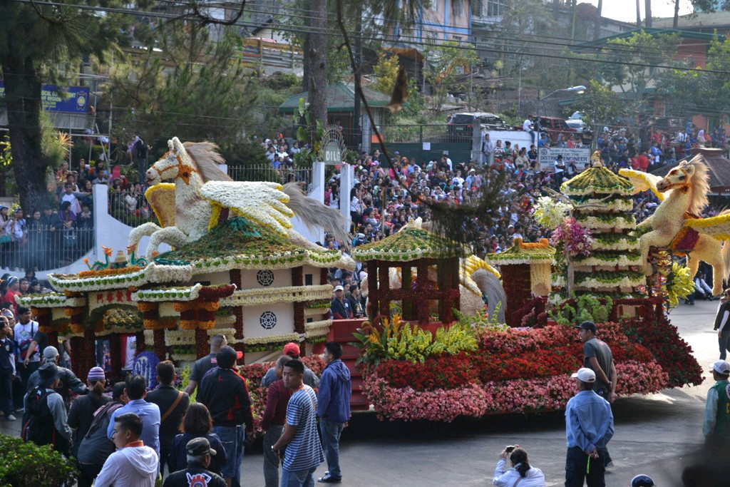 Panagbenga Festival is a flower festival in Baguio City. The Grand Float Parade showcases float with decorated flowers.